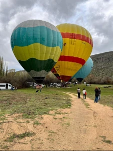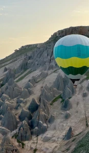 During the approximately 60-minute flight, you’ll float peacefully above the canyon, witnessing the morning light illuminating the rock walls and the river below — a view unlike any other in Cappadocia.